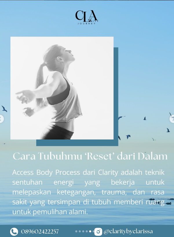 Pernah merasa tubuhmu lelah, pikiran penuh, tapi sulit menjelaskan kenapa? Mungkin bukan tubuhmu yang lelah — tapi energi di dalam dirimu yang mulai menumpuk. Disinilah Body Process di Clarity by Clarissa dibutuhkan.