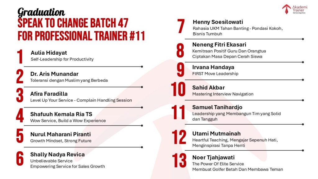 KAMI MENGUNDANG ANDA UNTUK HADIR DI GRADUATION SPEAK TO CHANGE BATCH 47 FOR PROFESSIONAL TRAINER #11!